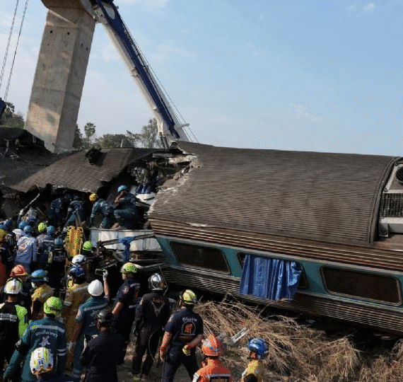 Al menos 32 personas murieron y otras decenas resultaron heridas al caer una grúa sobre un tren de pasajeros en Tailandia, según el...