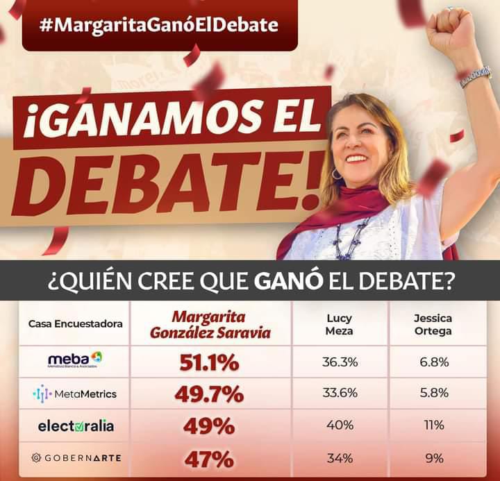 Con 36 puntos arriba, Margarita González Saravia mantiene la ventaja sobre su contrincante más cercana, esto en la encuesta de...