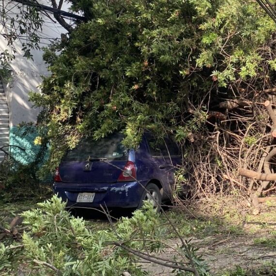 Esta mañana, un árbol de aproximadamente 10 metros de altura colapsó en la calle 2, entre Pino y Ciprés, en la...