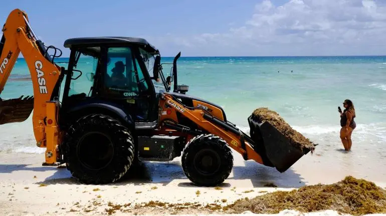 Elementos de la Secretaría de Marina (Semar) tienen como responsabilidad atender la problemática del sargazo en las playas, dio a conocer...
