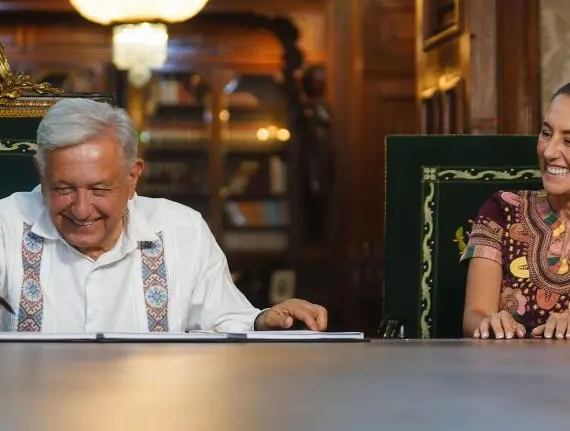 El presidente Andrés Manuel López Obrador, con la presidenta electa, Claudia Sheinbaum, como testigo de honor, firmó el decreto para la...