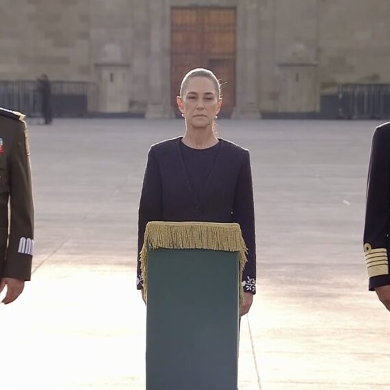 La presidenta de México, Claudia Sheinbaum Pardo, lideró la Ceremonia de Izamiento de la Bandera Nacional a media asta en la Plaza de la...