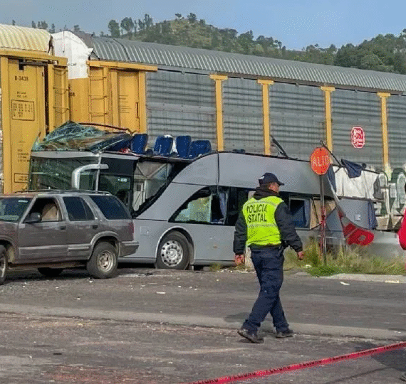 Un ferrocarril impactó a un autobús de pasajeros en la carretera federal Atlacomulco-Maravatío, en el Estado de México, lo que dejó 8...
