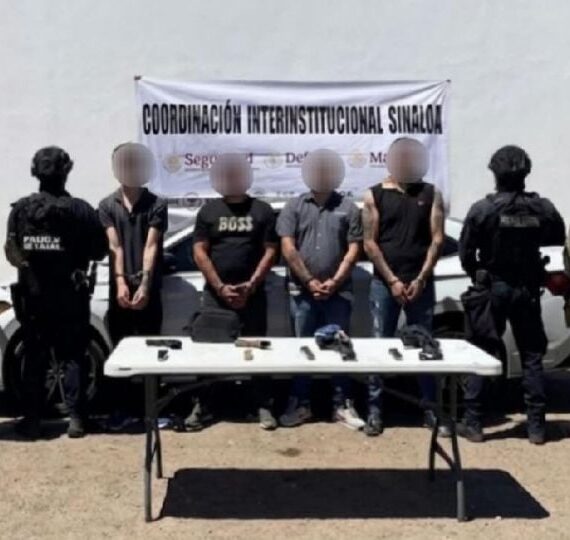 Elementos de seguridad de Sinaloa detuvieron a cuatro sujetos, a quienes les aseguraron armas de fuego y un vehículo con reporte de robo,...