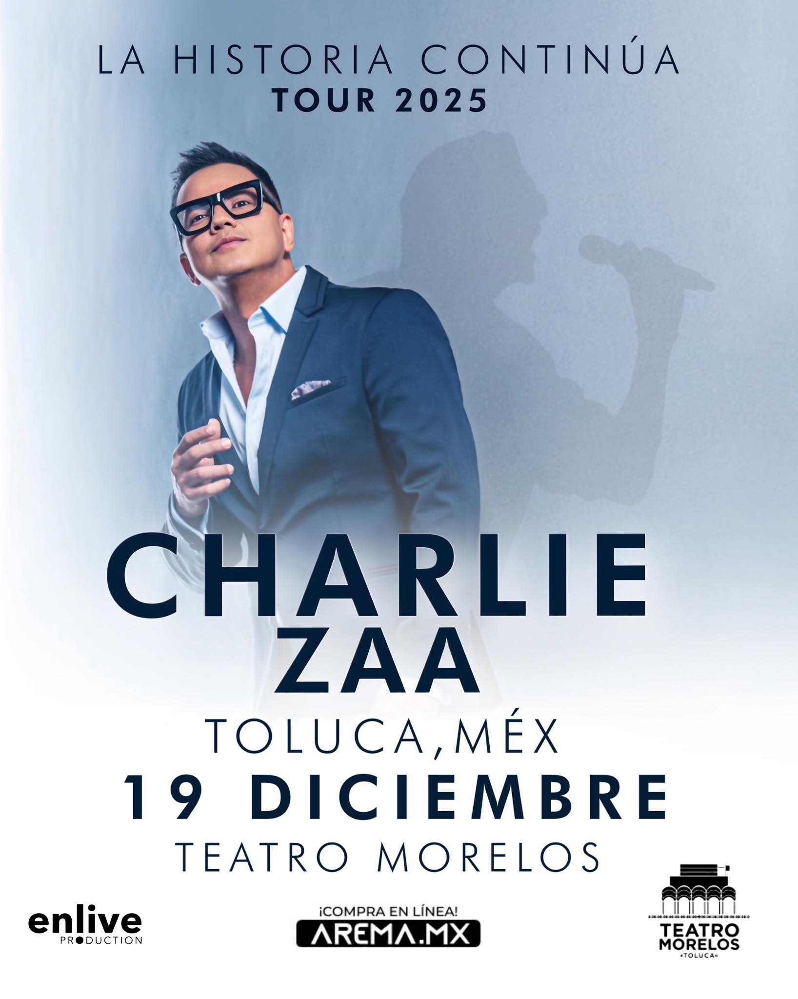 Charlie Zaa se presentará este viernes 19 de diciembre en el Teatro Morelos de Toluca a las ocho de la noche. Los boletos ya están disponibles en Arema.mx. Se recomienda al público asegurar su lugar con anticipación para vivir una de las noches más emotivas de la temporada.