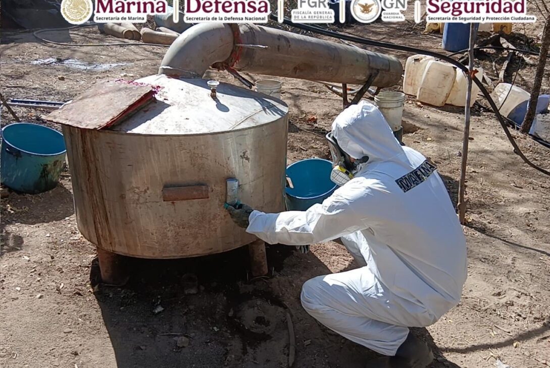 La Secretaría de Marina desmanteló tres laboratorios clandestinos para la elaboración de metanfetaminas en Michoacán, Durango y Sinaloa, donde se aseguraron más de 700 kg de metanfetamina, así como 12,000 litros y dos toneladas de precursores químicos”, señaló a través de su cuenta oficial en X.