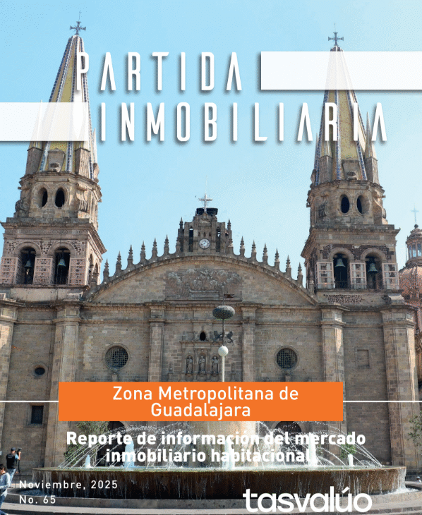 Partida inmobiliaria es un reporte de información estratégica con un panorama general del mercado inmobiliario, tanto de vivienda nueva, como usada de las principales ciudades del país. Su emisión por ciudad es semestral y analiza las zonas metropolitanas seleccionadas según el Sistema Urbano Nacional. Además, aborda las características del mercado demandante e indicadores de competitividad urbana. Se puede consultar el informe completo en: https://tasvaluo.com/wp-content/uploads/2025/11/Partida-Inmobiliaria-de-Guadalajara-Noviembre-2025.pdf