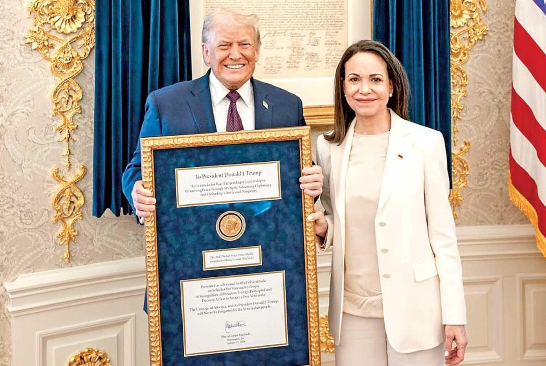 La líder opositora venezolana María Corina Machado le entregó ayer su medalla del Nobel de la Paz al presidente estadunidense, Donald Trump, que ansiaba ganar el galardón el año pasado, y que tildó el gesto de “maravilloso”.