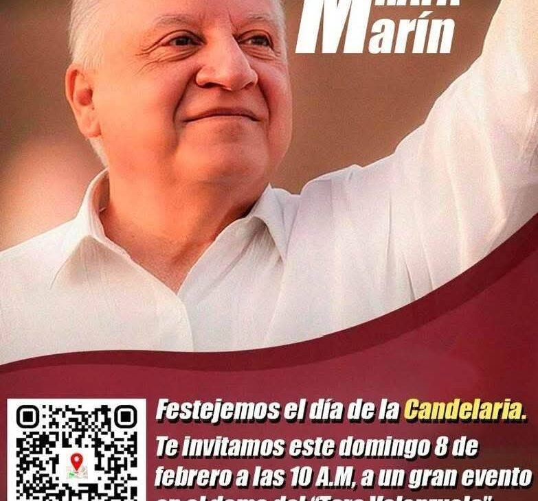 Las y los amigos de Rafael Marín te invitan este 8 de febrero 🗓️ a las 10 de la mañana ⏰ en el domo del Toro Valenzuela 🏟️, en la ciudad de Cancún 🌴, a disfrutar de un gran momento entre amigos 🤝🎶 con motivo del Día de la Candelaria 🕯️🌽.