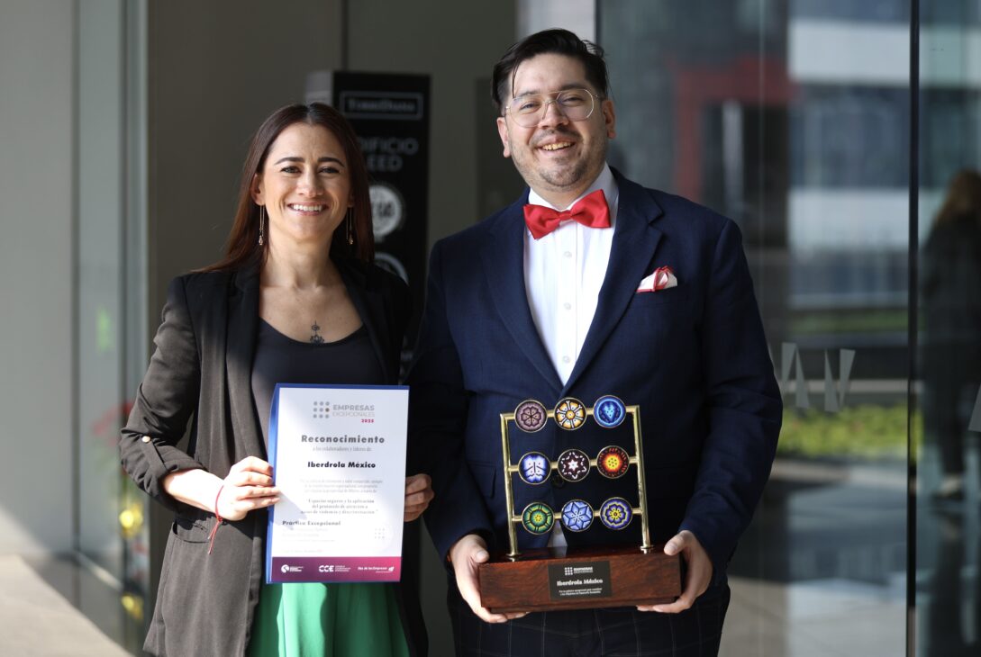 Por su compromiso con la creación de espacios laborales seguros, inclusivos y libres de discriminación, Iberdrola México fue reconocida como una Empresa Excepcional por parte del Consejo Coordinador Empresarial (CCE), el Consejo de la Comunicación y el Instituto para el Fomento a la Calidad (IFC).