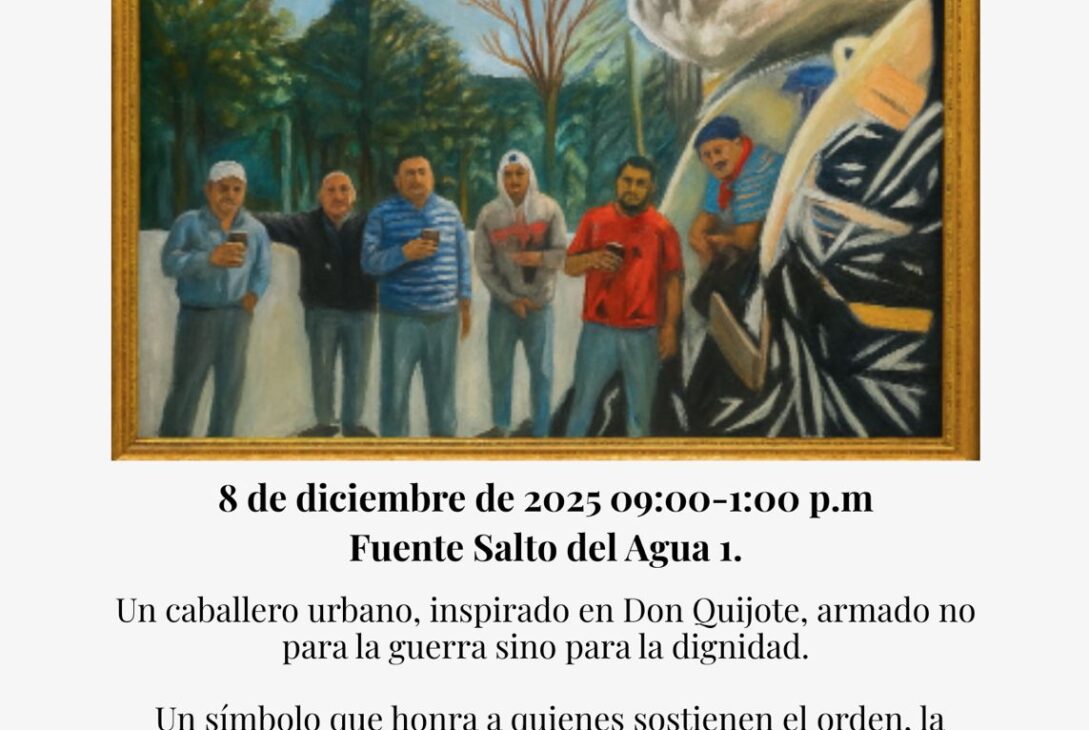 La obra plástica se ofrece como reconocimiento a los guardianes urbanos, el personal de limpieza, personificados como caballeros urbanos inspirados en Don Quijote y armados para la dignidad.