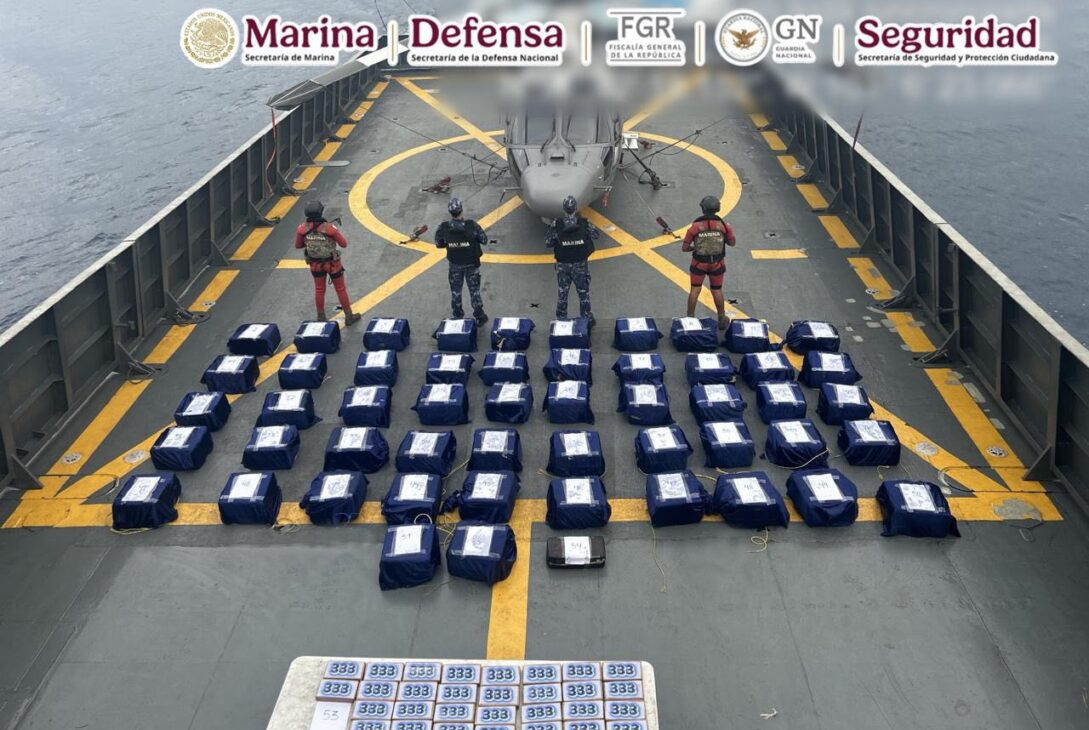 El secretario de Seguridad Pública y Protección Ciudadana (SSPC), Omar García Harfuch, dio a conocer, el aseguramiento de 1.6 toneladas de cocaína en altamar, sumando hasta el momento 48 toneladas en las diversas costas de México.