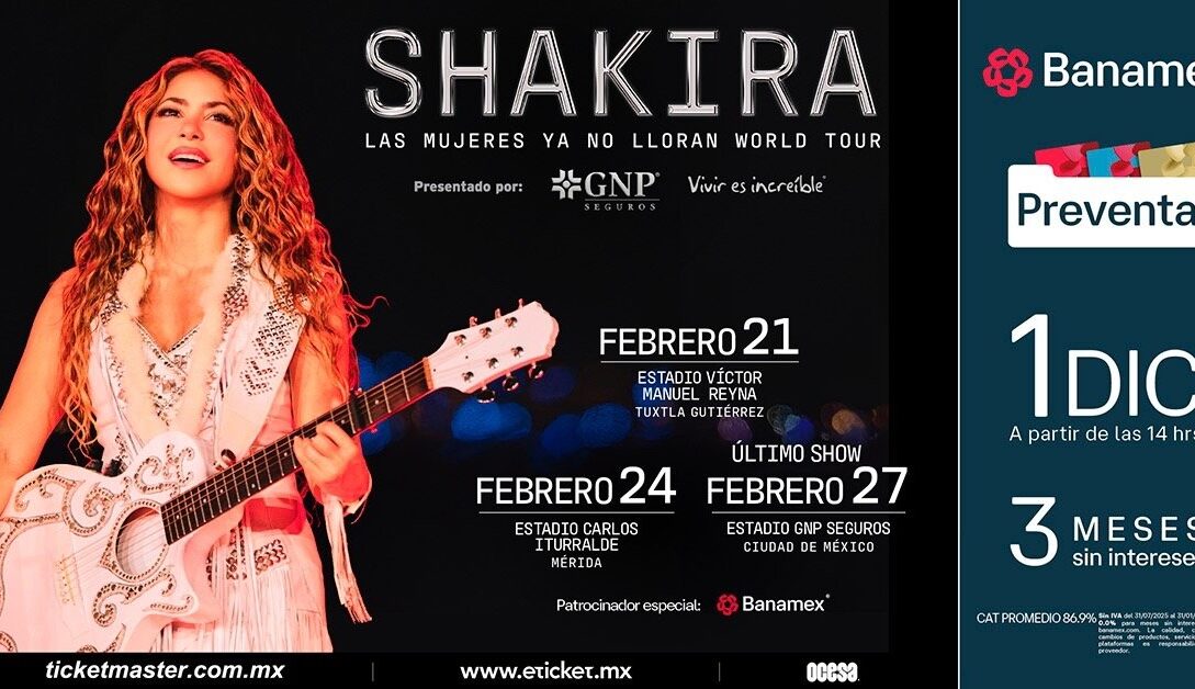 Después de un año arrasador en escenarios de todo el mundo y recibir el prestigioso reconocimiento de Billboard por La gira latina más taquillera de una mujer en la historia, Shakira anuncia nuevas fechas en México con su monumental Las Mujeres Ya No Lloran World Tour.