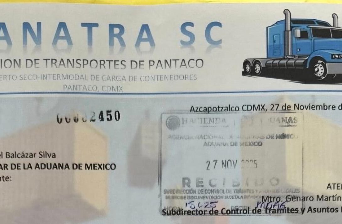 En una queja presentada el pasado 27 de noviembre de este 2025 ante la Agencia Nacional de Aduanas México de la Secretaría de Hacienda y Crédito Público, y con acuse de recibido, representantes del gremio de Transportes del Puerto Interno Seco de Pantaco, solicitan el apoyo debido a que llevan varios meses con la presencia de supuesto personal del SAT o AGACE, el cual no porta credencial, ni identificación visible que los acredite y los extorsionan.