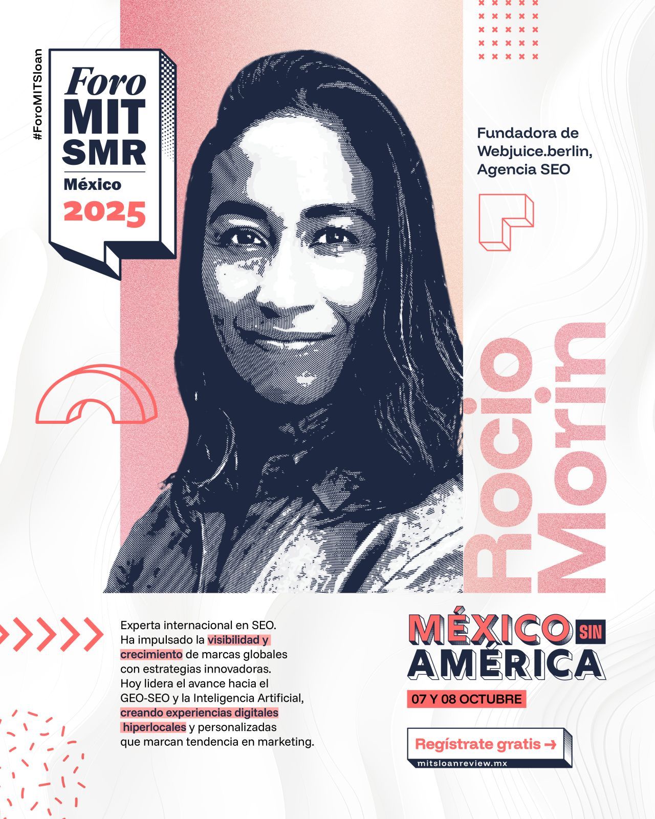 Para compartir su visión, anunciamos la participación de, Rocío Morin (fundadora de la agencia webjuice.berlin), en el Foro MIT Sloan Management Review México 2025.